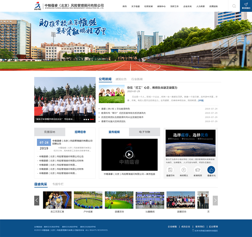 Project Description 中精蕴睿(北京)风险管理顾问有限公司2013年,现有教职工及各科目教育专家80多人,致力于为各中小培训学校(机构) 提供教育相关政策咨询与指引、法律服务、人才引进与培养、师资队伍建设与培训、教学教研与学科创新、市场营销企划、文化 理念塑造与品牌输出的专业化教育管理全方位的综合服务。 Official website address 淮南http://in-re.com/ I want to share